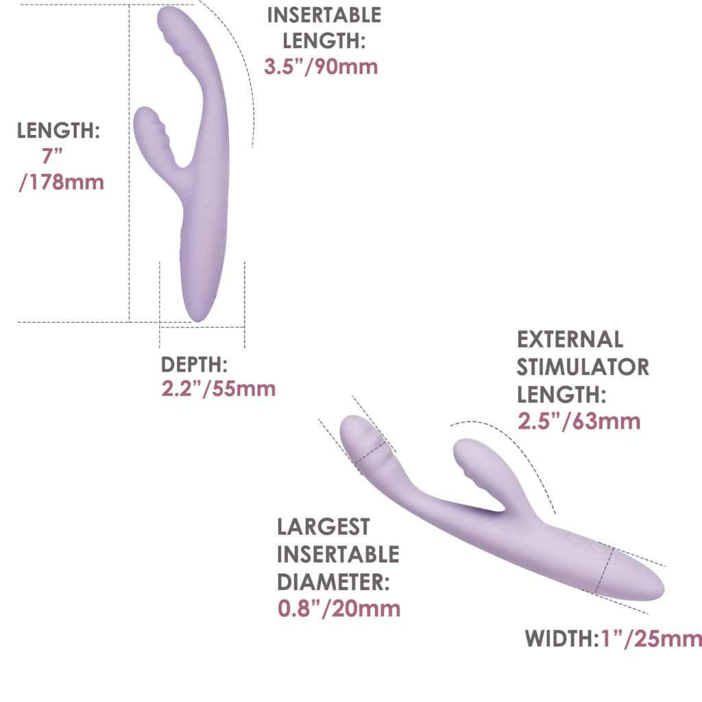 Para una mayor estimulación del punto G, el eje es semiflexible con una cabeza en ángulo preciso. Su forma única es perfecta para cuerpos con vagina que son nuevos en el uso de vibradores, que regresan de la inactividad sexual o que prefieren un eje más estrecho por razones médicas o de otro tipo.